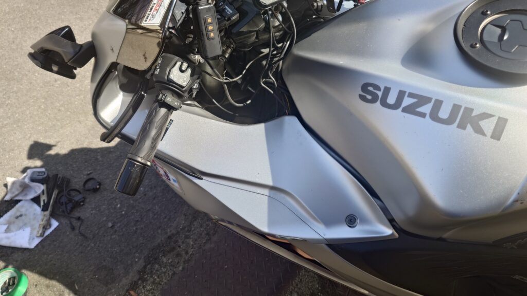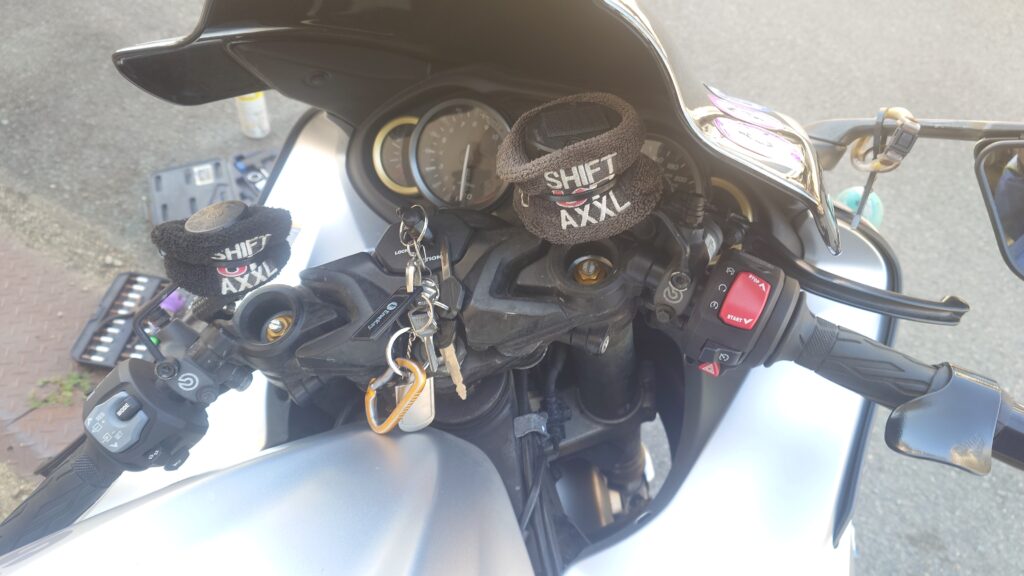 今の車両からブレーキレバーとクラッチレバー(どっちもブレンボで前の車両から使っています)の移植を頼んでいるので、新しい車体と交換とはいかないので、とりあえず、自分で取り付けたものを外していきます。