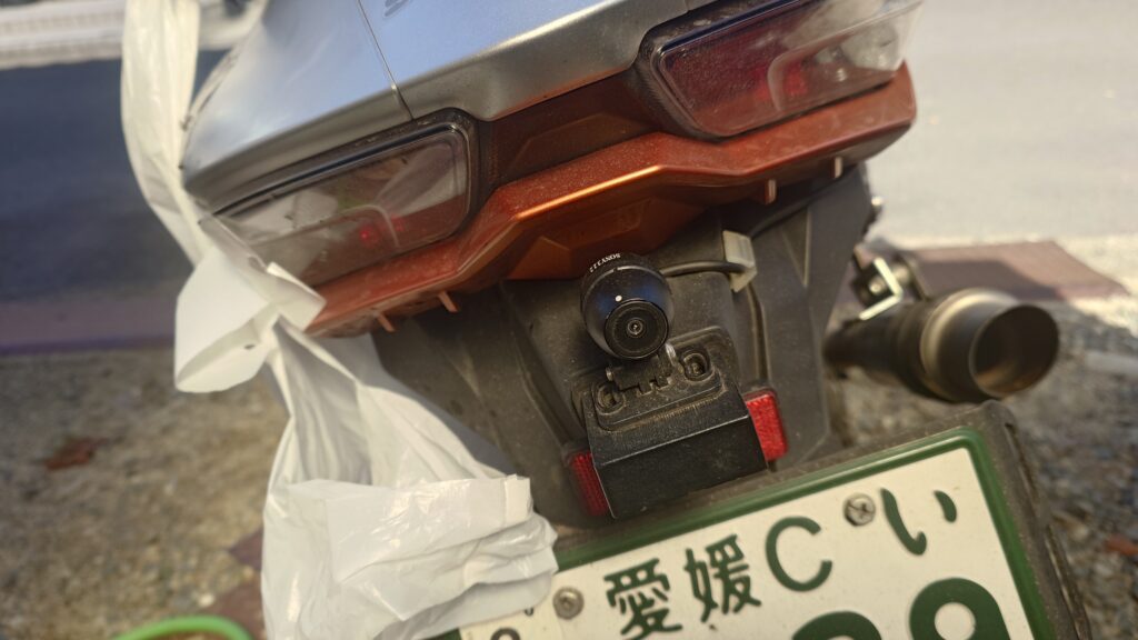 ナンバー灯の上に両面テープで張り付けているだけです。