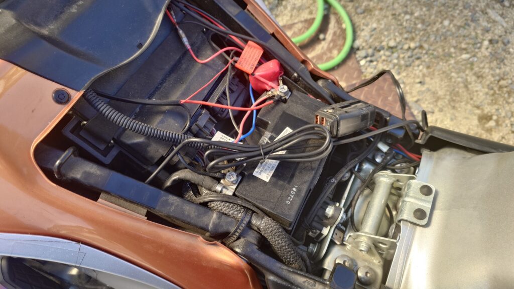 電熱ジャケットはキーオフ時に繋ぎっぱなしにはならないので、これだけはバッ直です。