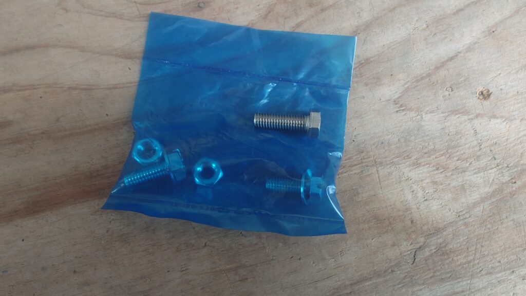ナンバープレートには荷掛けフックとドラレコステーを挟むので、セットで貰えるボルトでは長さが足りないため、ちょっと長めのボルトを買ってきています。