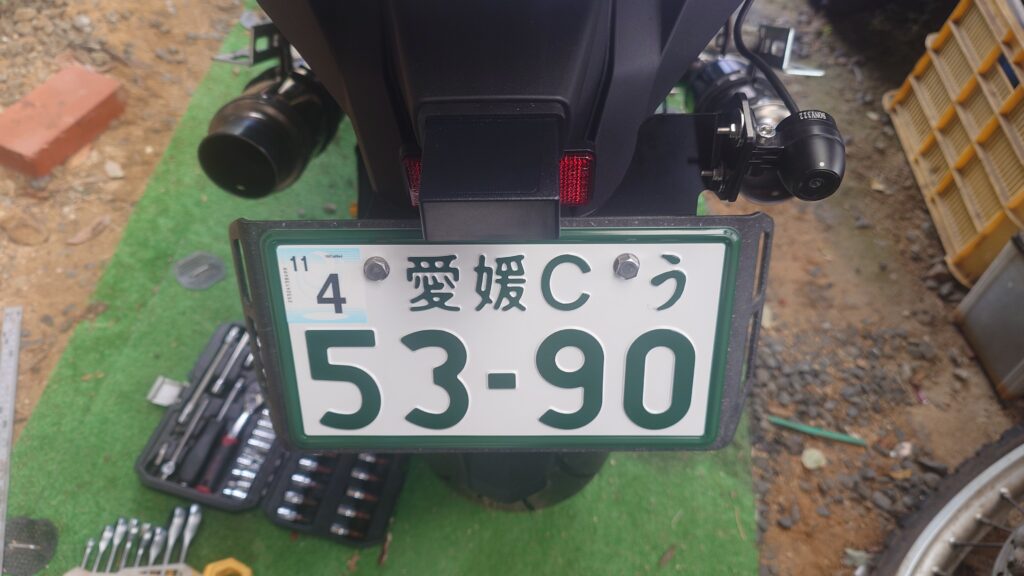 昨日(金曜)の夜、バイク屋さんに寄ってナンバープレートを貰ってきました。